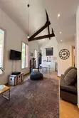 High ceilings and exposed beams for authentic charm