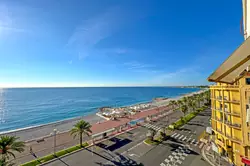 Discover this beautiful 2-room flat on the 6th floor, measuring 51.25m² with a 6.55m² terrace, located in a high-end building on the famous Promenade des Anglais in Nice, facing the sea and just steps from the beaches.