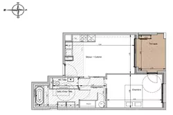 We are offering a bright 3-room apartment with 1 bedroom, an open living area leading to a nice terrace, and high-end features: large bay windows, reversible air conditioning, built-in storage, secure residence with parking.