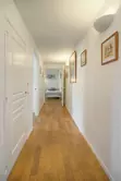 The apartment offers a bright living area with beautiful high ceilings and a fully equipped open-plan kitchen. It includes two comfortable bedrooms, one with its own en-suite bathroom and toilet. A second shower room with toilet, a small office room currently used as an additional sleeping area, and a laundry room complete this functional and welcoming layout.