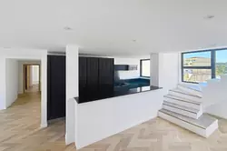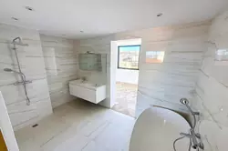 The entrance opens into a large, light-filled living room, extended by a modern open-plan kitchen. An internal staircase leads directly to the private rooftop terrace, a true outdoor living space where you can enjoy the Mediterranean sunshine and breathtaking views year-round.