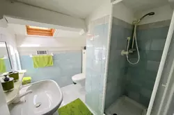 On the upper level, you'll find a landing with a closet, two bedrooms with built-in wardrobes, as well as a bathroom with a shower, bathtub, and toilet. The third level includes a large additional bedroom and a shower room with a toilet.