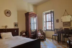 On the ground floor, there is a small independent apartment consisting of a bedroom, an office, a bathroom with a toilet, as well as a living room/kitchen.