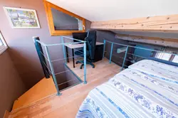 On the top floor, the master suite will amaze you with its cathedral ceiling, reaching nearly 4 meters. You'll discover a custom-made dressing room, a sumptuous bathroom with a jacuzzi, and a separate toilet. From the bedroom, you access a second 8 m² roof terrace, perfect for contemplating the picturesque village life. A final staircase leads to a cozy mezzanine, converted into a guest bedroom.