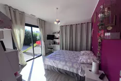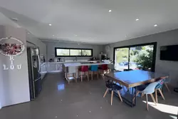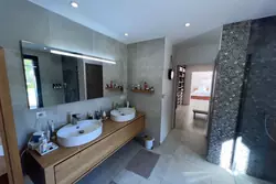 An elegant summer kitchen, perfectly integrated into the exterior, is a real asset for sunny days. A home office is ideally suited for working from home. A comfortable master suite, with a dressing room, a lovely bathroom, and a toilet, benefits from direct access to the terrace and pool. Another large, bright bedroom can serve as a playroom, artist's studio, etc., and two further bedrooms, each with its own shower room, are ideal for comfortably accommodating family and guests, plus a toilet.