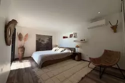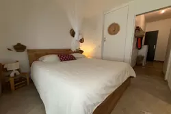 Upstairs, the refined master suite opens onto a solarium terrace—a true sea-facing balcony ideal for quiet contemplation and taking in the fresh Mediterranean air. It features a spacious private bathroom and a walk-in dressing room. On the same floor, a second south-facing bedroom with a mezzanine offers an ideal space for welcoming family or guests.