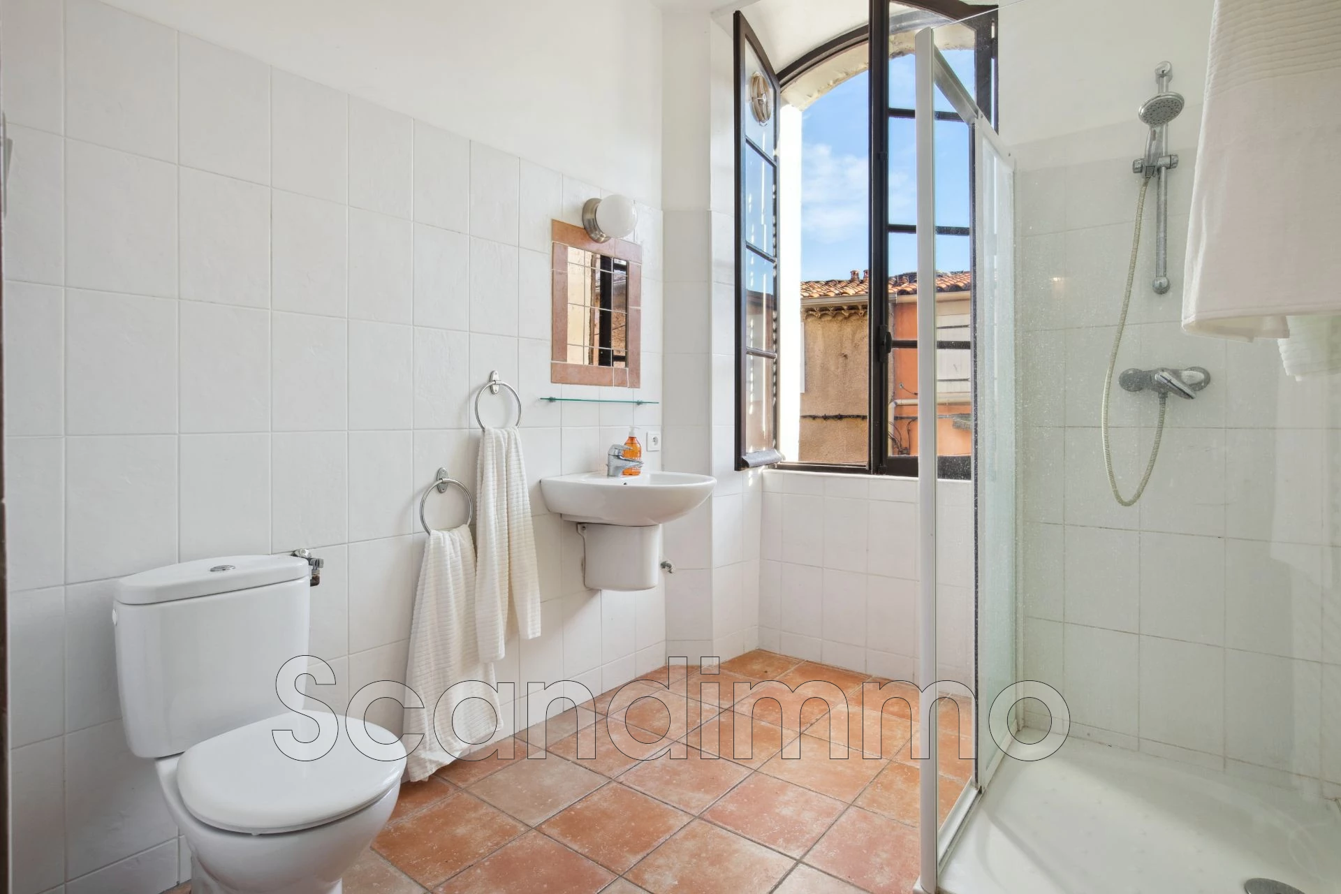Going up one floor, you find on the left a very large bedroom with its own bathroom, as well as a shower room on the landing. A few steps higher, on the right, is a room with a rather low ceiling that is also used as a bedroom, with a window overlooking the quiet alley.