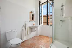Going up one floor, you find on the left a very large bedroom with its own bathroom, as well as a shower room on the landing. A few steps higher, on the right, is a room with a rather low ceiling that is also used as a bedroom, with a window overlooking the quiet alley.