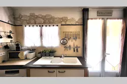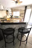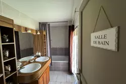 * Ground floor: an entrance hall with access to the kitchen open to the living room and dining room offering a view towards the medieval part of Les Arcs, the Parage, and towards the river. The ground floor (entrance/living room/dining room/kitchen), bright and very pleasant, is 30m2.