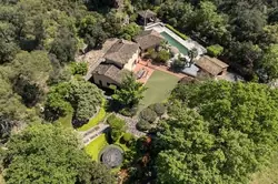 A beautiful wooden gate opens onto a large paved parking area and garage. From the entrance you overlook the flat, well-maintained grounds with newly renovated stone terraces, a heated pool, playground and vegetable garden.