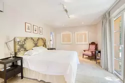 The main level consists of a primary suite with dressing room, bathroom and direct access to the pool, as well as an additional bedroom. On the second floor there are two guest bedrooms and a large bathroom.