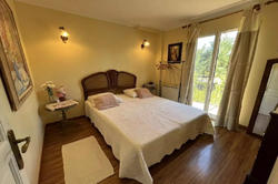 Upstairs: hallway, 1 spacious bedroom, opening onto a south-facing balcony terrace overlooking the garden, with storage and private bathroom. 2 other bedrooms, one also with a south-facing balcony, shower room, toilet.
