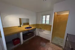 Ground floor : comfortable living / dining room with chimney, spacious open furnished kitchen, storage room, large shaded terrace to the West pleasant terrace to the South with pergola, toilet, 1 main bedroom with cupboards, shower room, toilet.