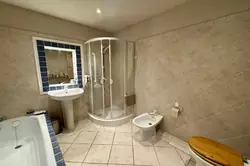 Still from the living room, stairs lead to the lower floor where there is an apartment (access from the house and also with a separate access if you want to rent it out, for example). The apartment benefits from a living room with access outside/separate entrance, a bedroom, a separate kitchen and a bathroom with bathtub, shower, sink and toilet. The living room could be converted into a garage again if desired.