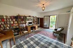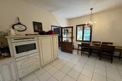 The house, in good condition and very bright, is composed as follows: an entrance hall, a bright living room with fireplace and beautiful volumes under the ceiling, a bathroom with bathtub, shower, sink and toilet, a beautiful Provencal-style kitchen with a dining area, a very pleasant living room with sofas facing the stove, and a spacious bedroom with garden access. From the living room, there is access to a large covered terrace which then leads to a separate bedroom (former summer kitchen of 10 m2).