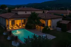 Walking distance to Aups town center – charming villa with spacious rooms! Located just a few minutes' walk from the center of Aups, this lovely villa is nestled in the heart of a pleasant landscaped garden with a swimming pool. With approximately 160 m² of living space, it impresses with its generous proportions and abundant natural light. The entrance opens onto a large living room with a fireplace, as well as a welcoming dining room. The spacious kitchen, open to the living area, offers an ideal space for entertaining. The ground floor also includes a master suite of approximately 20 m² with a shower room, toilet, and dressing room, as well as two further bedrooms, a bathroom, and a separate toilet.