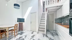 Upstairs (on the mezzanine), there's an additional bedroom and a small hallway, providing extra space and flexibility.