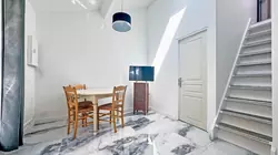 Upstairs (on the mezzanine), there's an additional bedroom and a small hallway, providing extra space and flexibility.